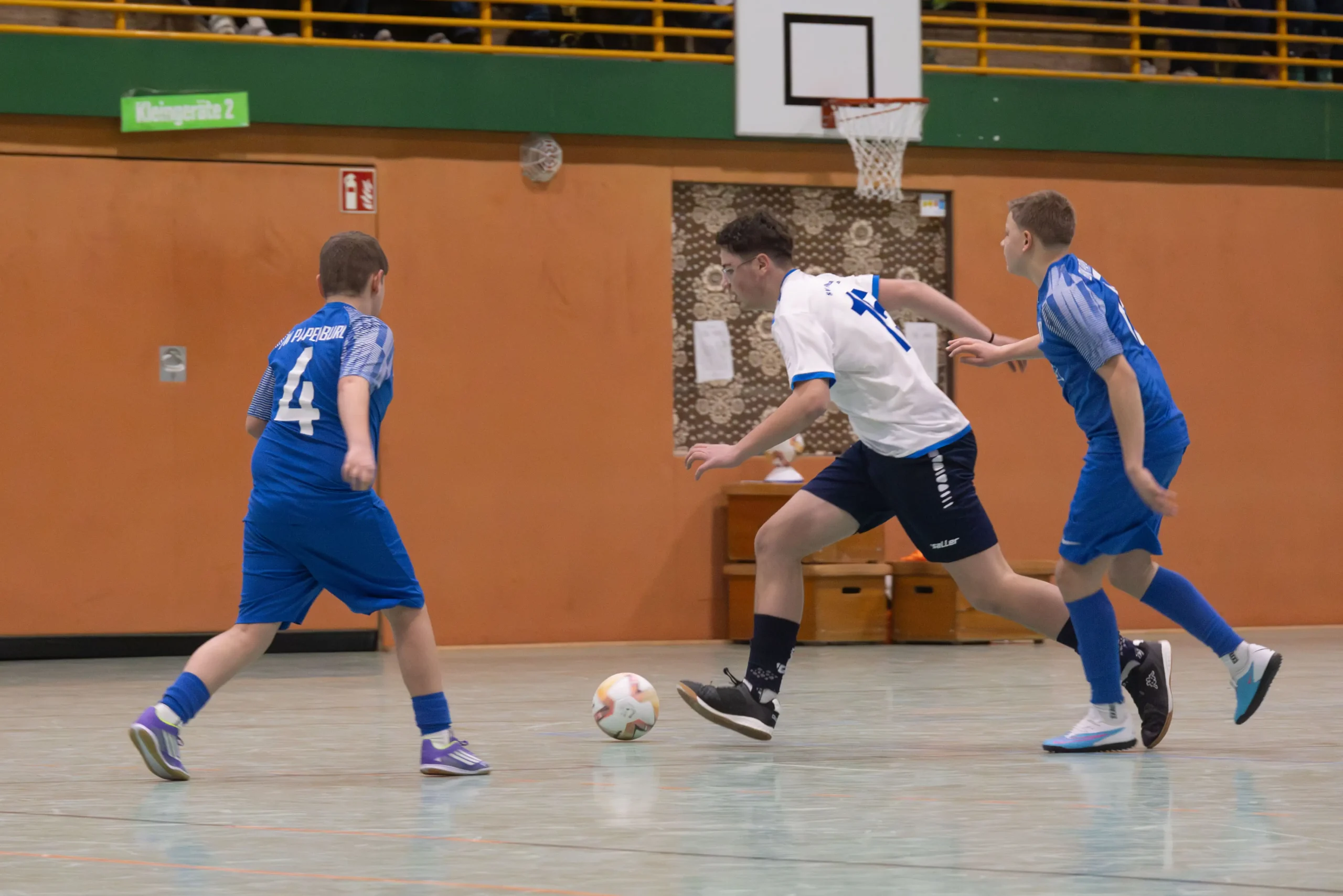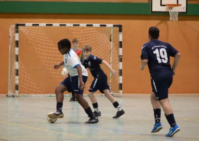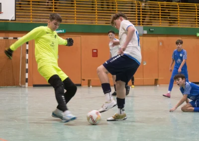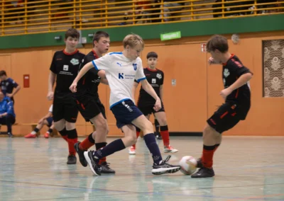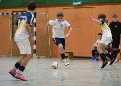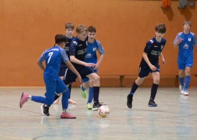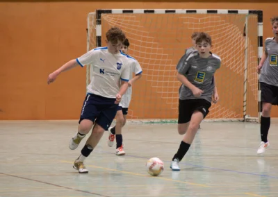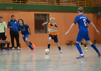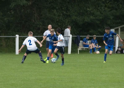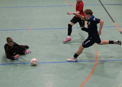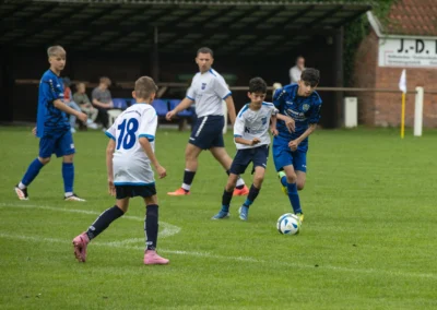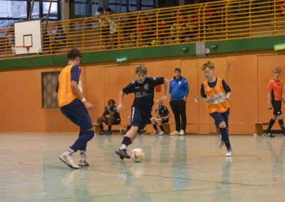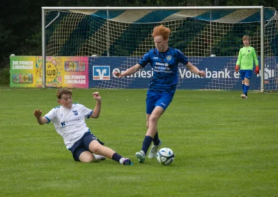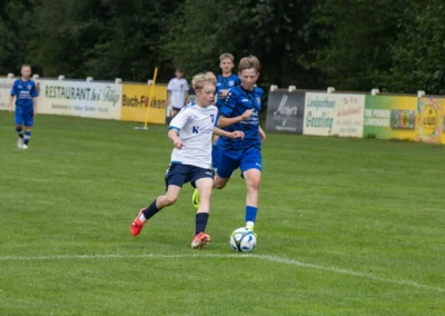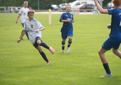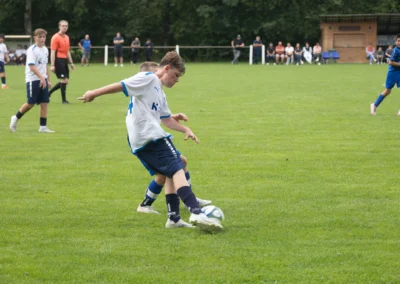 Ein zentrales Ziel ist die Festigung der technischen Grundlagen unter Gegnerdruck. Passen, Dribbling und Torabschluss werden mit höherem Tempo und unter realistischen Spielsituationen trainiert. Darauf aufbauend führen wir unsere Spieler an gruppentaktische Abläufe heran – etwa Doppelpässe, Spielverlagerungen über die Außen oder grundlegendes Abwehrverhalten. Auch erste taktische Formationen wie 4-4-2 oder 4-3-3 werden altersgerecht vermittelt.