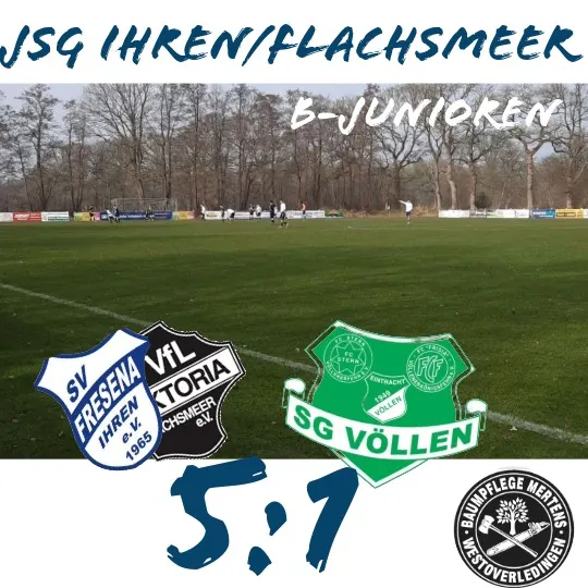 Auftaktsieg für unsere A-Junioren Mit einem verdienten 5:1-Erfolg gegen die JSG Völlen sind unsere A-Junioren der JSG Ihren/Flachsmeer erfolgreich in die neue Saison gestartet. Zu Beginn der Partie tat sich unsere Mannschaft noch etwas schwer, ins Spiel zu finden....