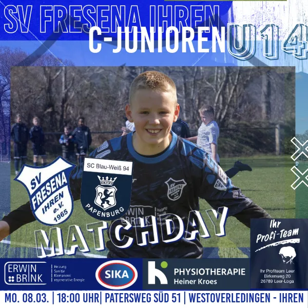 💙🤍 Start in die neue Woche für unsere Junioren! ⚽ Für unsere C-Junioren steht direkt zum Wochenbeginn ein kleiner Leistungsvergleich gegen den SC Blau-Weiß Papenburg IV an. Nach der langen Hallensaison ist das für unser Team eine gute Gelegenheit, wieder in den...